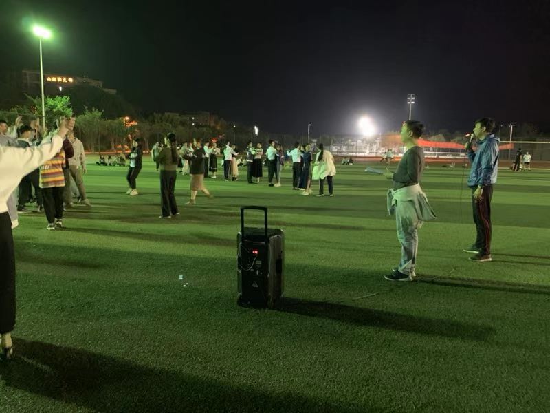 除此之外让人印象深刻的还有那盛大的开幕式,活力四射的圆舞曲,震撼人心的字模,整齐划一的彩旗,无不让人热血沸腾。所有演出的顺利进行,少不了体育部老师们尽心指导,少不了同学们的积极配合。每天晚上绿茵地上照射下来的影子,是所有人付出的见证。