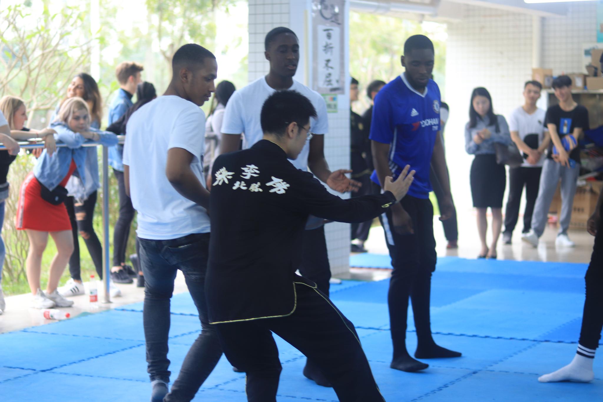 4月3日,以“中外交流”为主题的中国功夫跨文化互动在白云校区举行。此次活动由体育部黄元骋老师主持,北安普顿大学的国际生,跆拳道校队队员,武术校队队员参与此次活动。