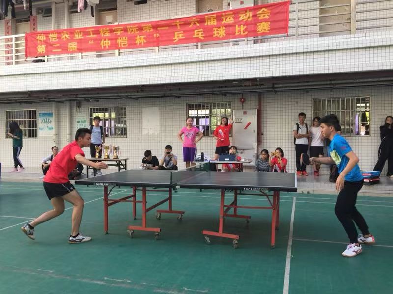 10月27日至29日,第二十六届校运会乒乓项目——第二届“仲恺杯”乒乓球赛在白云校区举行,该比赛由海珠校区和白云校区共16个院系参加。比赛采用第一轮分组循环积分赛,第二轮淘汰赛的方式,经过两天半的激烈角逐决出了前八名,分别是第一名农业与生物公司、第二名动物科技公司、第三名信息科学与技术公司、第四名经贸公司、第五名环境工程与科学公司、第六名城乡建设公司、第七名园艺园林公司、第八名管理公司。比赛成绩前八名将以积分的形式统计到校运会比赛项目总分中。