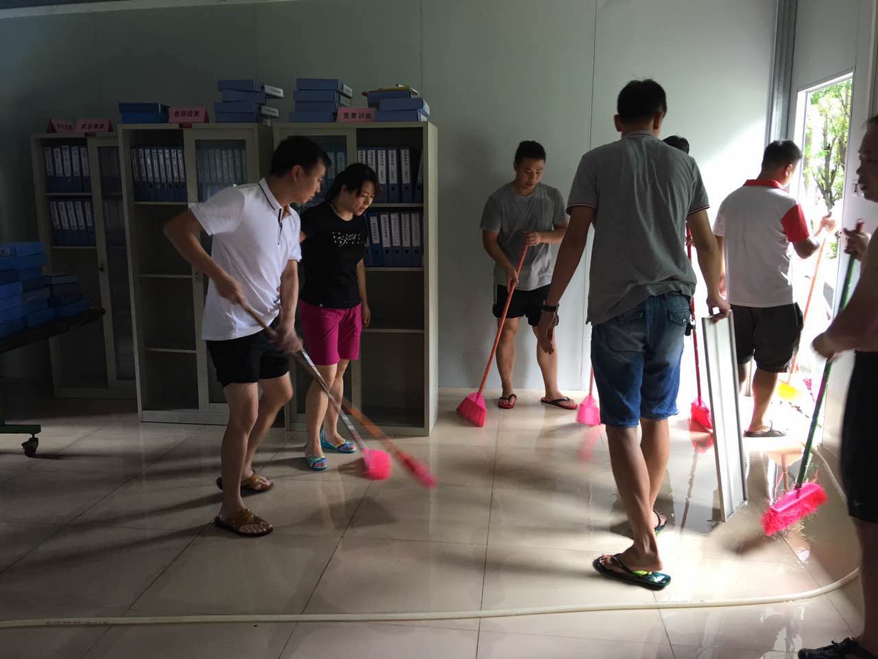 灾后清理工作一直持续到下午两点多,无论距离公司近的,还是远在郊区的同志都积极参与到水灾后的扫除和劳动中,不吝汗水力气,顺利完成了所有的清理任务。