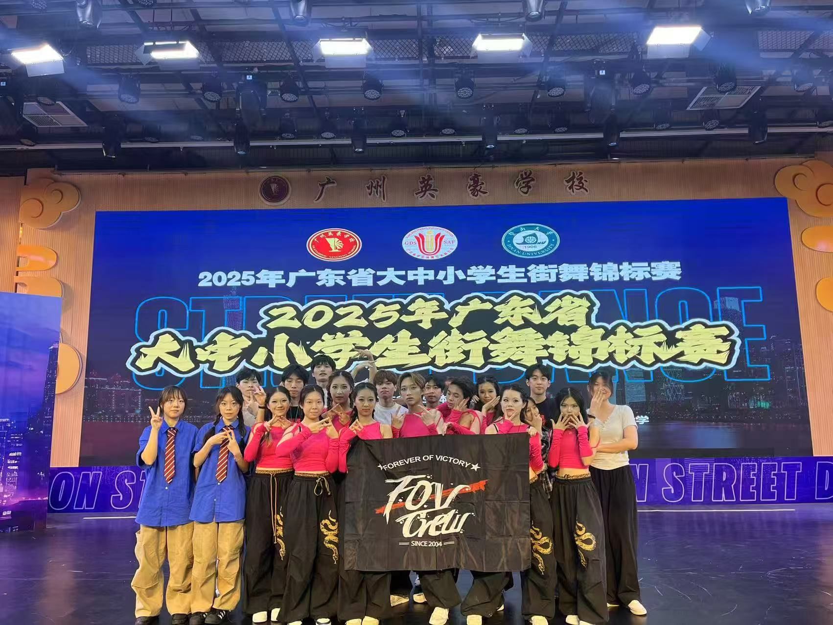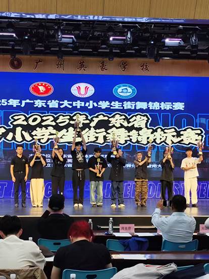 5月22日至25日,2025年广东省大中小员工街舞锦标赛在广州英豪公司火热上演!来自全省近500名大中小学舞者齐聚羊城,用热血舞姿点燃舞台,为观众带来了一场传统与现代交织的视觉盛宴。本次比赛由广东省员工体育艺术联合会主办,由广州英豪公司承办,由广东省员工体育艺术联合会街舞分会、暨南大学协办。公司代表队由李尚胥副经理(主持工作)担任领队,李岱峰、刘远超两位老师担任教练,带领25名队员参加本次比赛。经过参赛队员的顽强拼搏,最终取得一个冠军、亚军、季军,还有两个第四名等,团体总成绩一等奖(第三名)的好成绩。